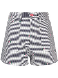 striped embroidered high-waisted shorts Crafted in Japanese denim, these Kenzo shorts are patterned with a blue and white stripe that echoes SS23's nautical influences. The pair is finished with the brand's signature KENZO Pixel flower embroidered all over. Highlights - Blue/white - Cotton - Denim - Vertical stripe print - All-over floral embroidery - High waist - Front button and zip fastening - Belt loops - Two front patch pockets - Two rear patch pockets - Logo patch to the rear Imported Composition Cotton 100% SIZE & FIT Model measurements Height 5 ft 10 in(1.77 m) Bust/Chest 31.49 in(80 cm) Hips 36.22 in(92 cm) Waist 22.44 in(57 cm) FittingInformation Designed for a slim fit that sits just away from the body offering a close yet comfortable fit Made from a midweight non-stretch fabric This piece fits true to size – take your usual size Washing instructions Machine Wash