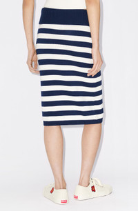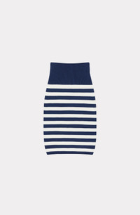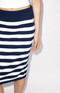 This striped midi skirt celebrates the Japanese vision of French fashion with its nautical influences. The knitted fabric brings softness and comfort to the mid-season. Keep your look casual by combining it with trainers and a crop top. Knitted midi skirt. 2 front pockets. All-over jacquard stripes. Elasticated waist. Ribbed finishes at waist and hem. COMPOSITION & CARE Made in Turkey 100% cotton