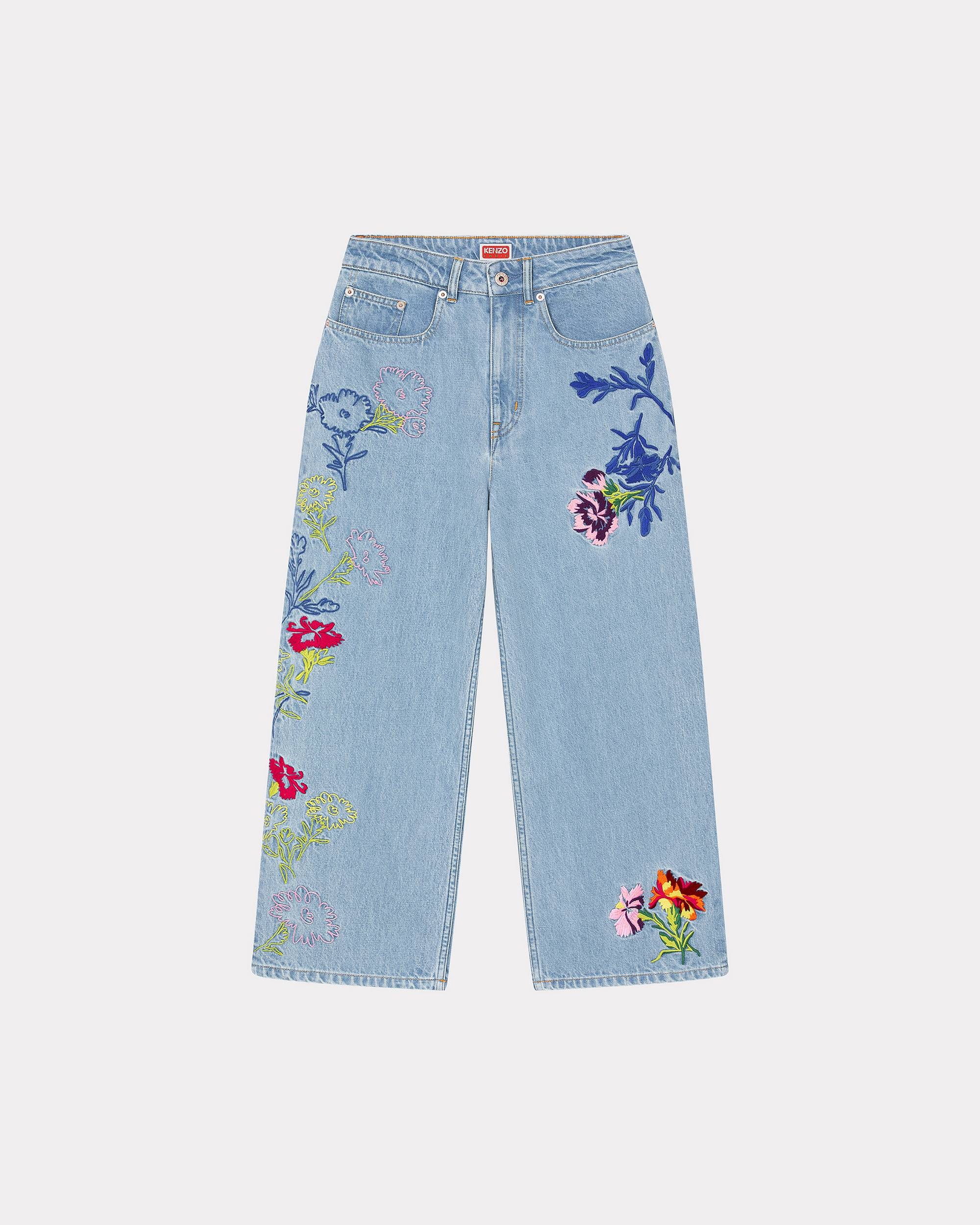Sumire 'KENZO Drawn Flowers' embroidered cropped jeans