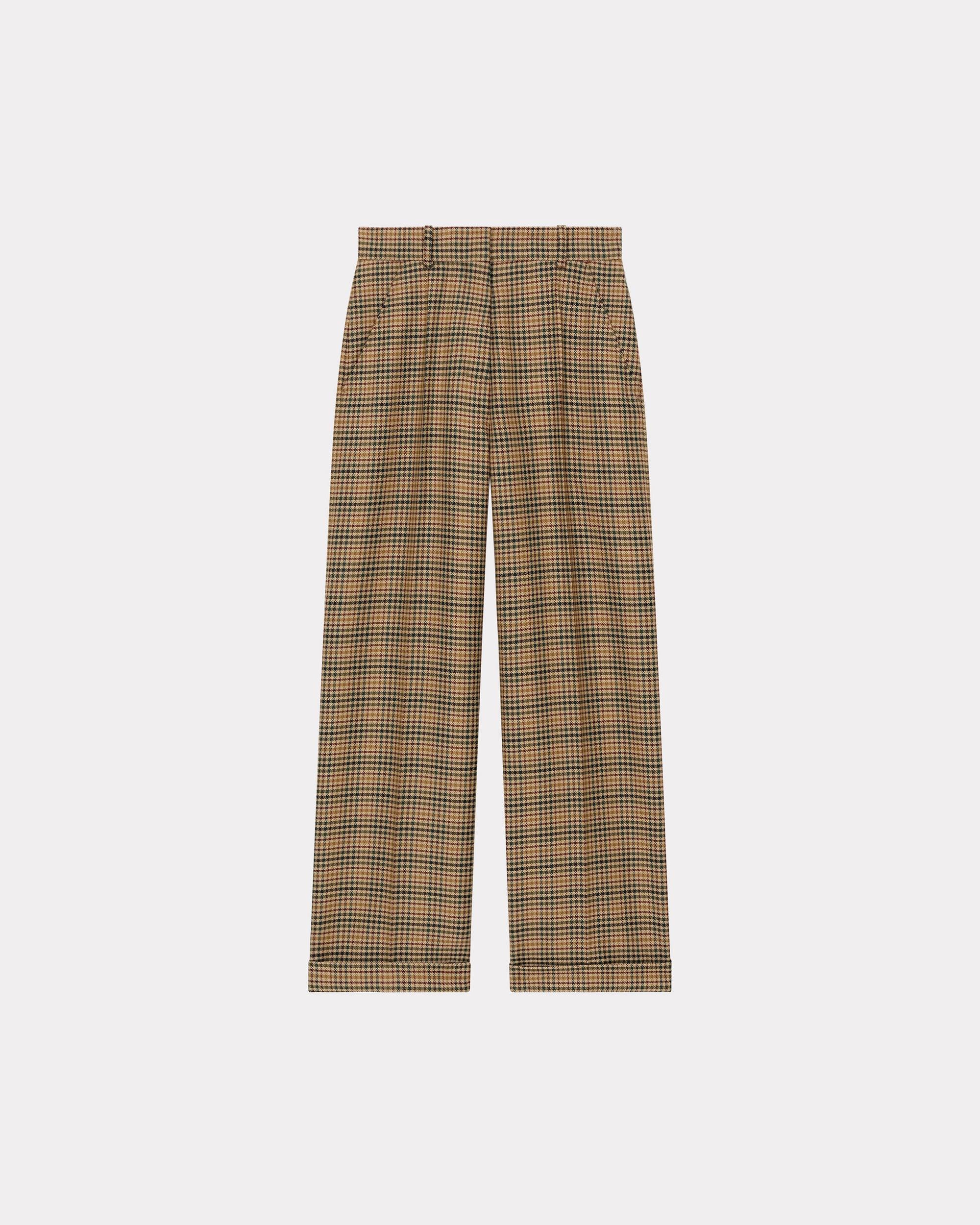 Nigo continues his exploration of British classics with these plaid trousers. The cut evokes the workwear style the designer is so fond of. The pleat at the front of the leg goes all the way down to the cuff for a vintage look. This timeless design is embellished with small details such as a yellow 'BOKE FLOWER' button on the back pocket. English-inspired tailored trousers. Plaid motif. 2 front pockets set into the side seams and 2 jersey flap pockets at the back. Belt loops including two that criss-cross at the back. Yellow 'BOKE FLOWER' button on the back pocket. Pleated all the way down the front of the leg. Turned-up cuffs. Zip fastening with hidden button. SIZE & FIT Straight cut.Leg length: 102 cm. The model is 175 cm tall and wears a size S. COMPOSITION & CARE Made in Romania 53% polyester, 47% virgin wool