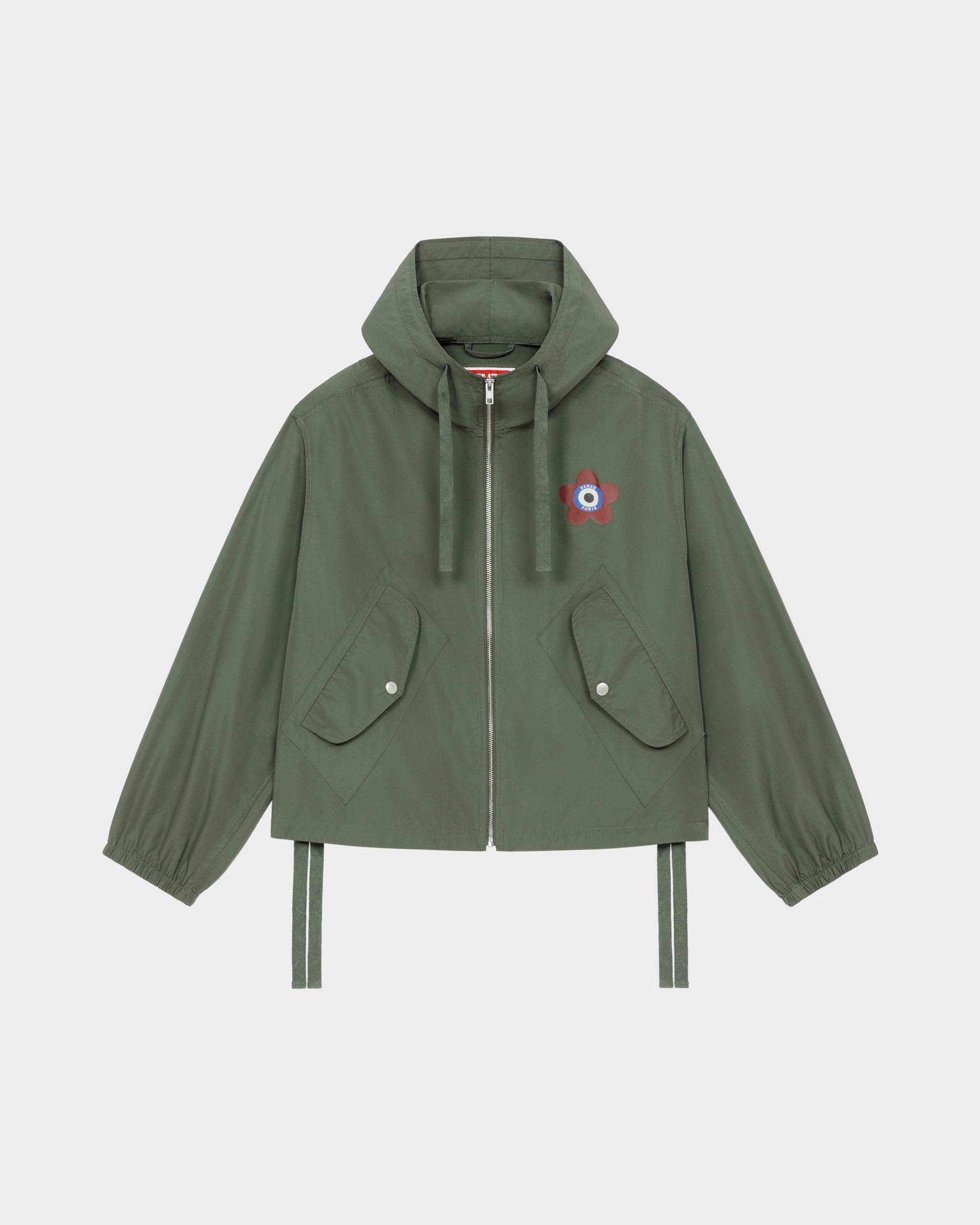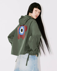 This windbreaker feels perfectly at home in the new collection with its theme of 1960s England. It has a hood and a comfortable classic cut and features a 'KENZO Target' print inspired by the British group The Who, pop art and Nigo's 'BOKE FLOWER'. Nylon windbreaker. Long sleeves. Hood with drawstrings. 'KENZO Target' print at the front and back. Side flap pockets with press studs. Water-resistant fabric. Fitted cuffs. Zip fastening. SIZE & FIT Classic cut. Length of back: 60 cm. The model is 176 cm tall and wears a size S. COMPOSITION & CARE Made in China 55% polyester, 30% cotton, 15% nylon