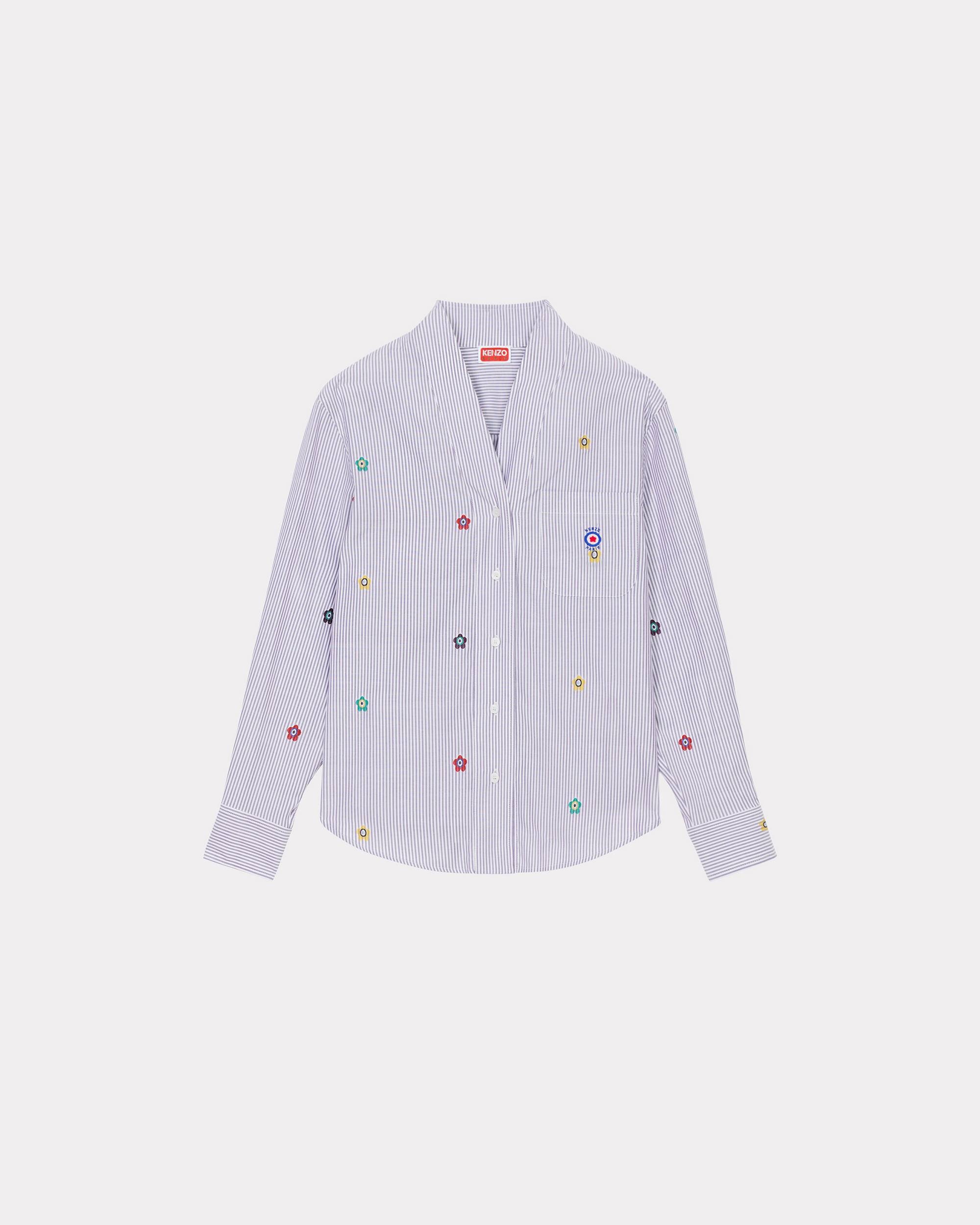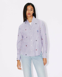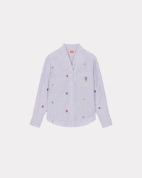 This shirt takes its inspiration from traditional Japanese clothing but without the traditional neckline. Its striped pattern is enhanced by the ‘KENZO Target’ logo that reinterprets the ‘BOKE FLOWER’ in a pop-art style. Poplin shirt. Long sleeves with buttoned cuffs. Collarless. All-over ‘KENZO Target’ logos and stripes. Chest patch pocket. Rounded hem. Front button fastening. SIZE & FIT The model is 175 cm tall and wears a size S. COMPOSITION & CARE Made in Tunisia 100% cotton