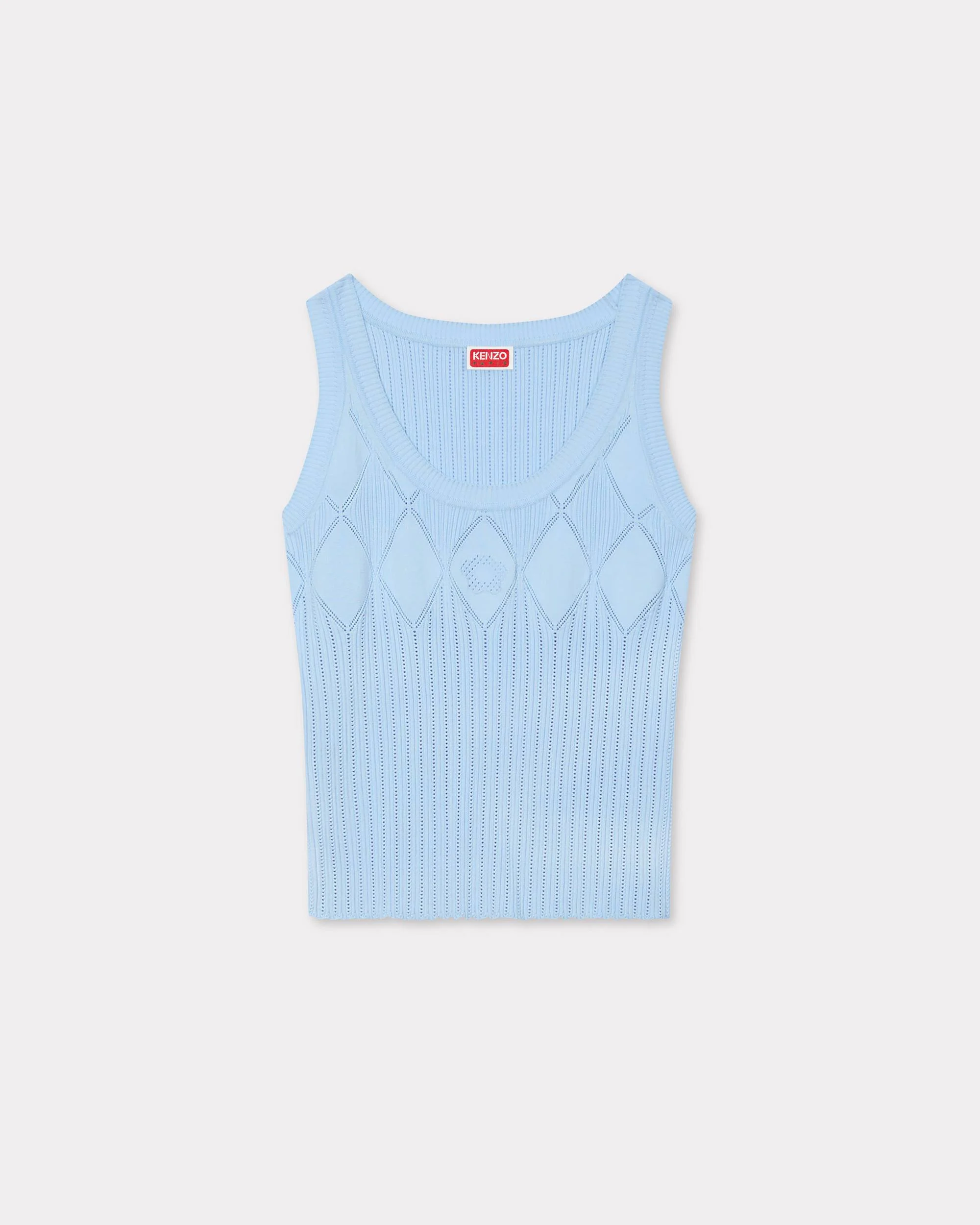 Textured tank top. Viscose mix Stretch Lace. ‘Boke Flower’ branding in open stitch technique included in the knit. Product Reference: FF62TO6143CW.63 SIZE & FIT The model is 175 cm tall and is wearing size S. COMPOSITION & CARE Made in China 86% viscose, 14% polyester Do not bleach Iron at low temperature Flat drying in the shade Do not tumble dry Very mild professional wet-cleaning