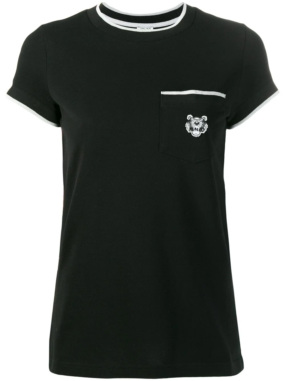 chest pocket T-shirt Japanese designer Kenzo Takada launched Kenzo in Paris in 1970. Today, under the creative direction of Opening Ceremony's Humberto Leon and Carol Lim, the label is as popular as ever thanks to its refreshed aesthetic. This black cotton chest pocket T-shirt from Kenzo features a ribbed round neck, short sleeves, a signature embroidered tiger to the chest, a straight hem and side slits. Imported Composition Cotton 100% SIZE & FIT FittingInformation This piece fits true to size. We recommend you get your regular size Cut for a relaxed fit Washing instructions Machine Wash