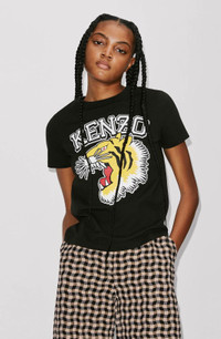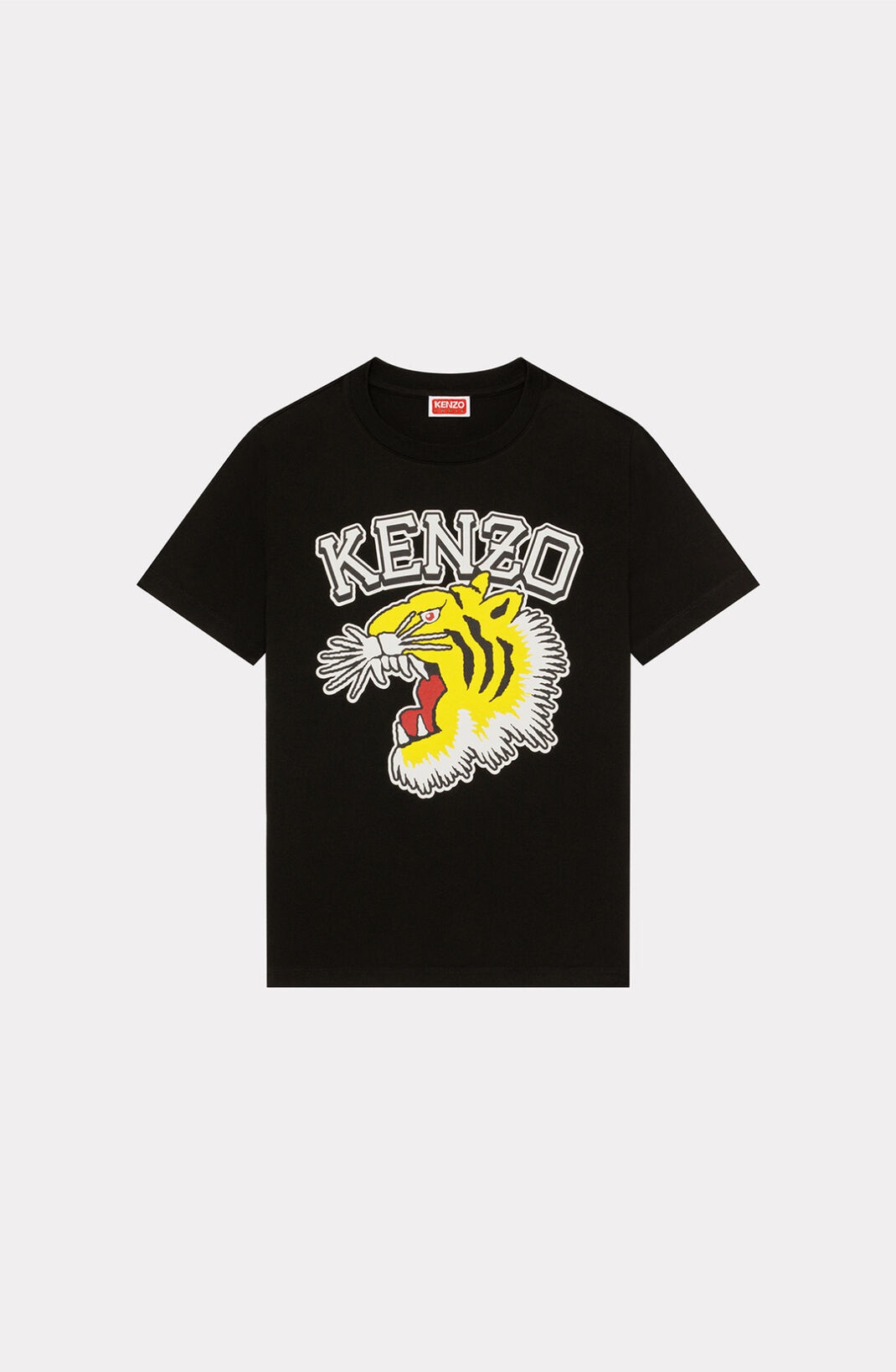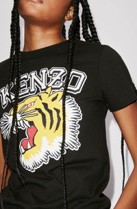 Continuing in the Ivy League style so prized by Nigo, this T-shirt offers a fresh version of one of the brand's most popular emblems. The iconic roaring Tiger stands out large and bold on the front, accompanied by a raised KENZO logo, all in a vintage style. The bright colours of this design are enhanced by the top-quality silkscreen print. Short-sleeved T-shirt. Round neck. 'Tiger Varsity' printed on the front in silkscreen print. KENZO Paris label on the back. SIZE & FIT The model is 176 cm tall and wears a size S. COMPOSITION & CARE Made in Portugal 100% cotton