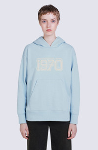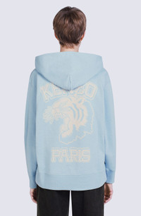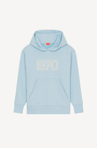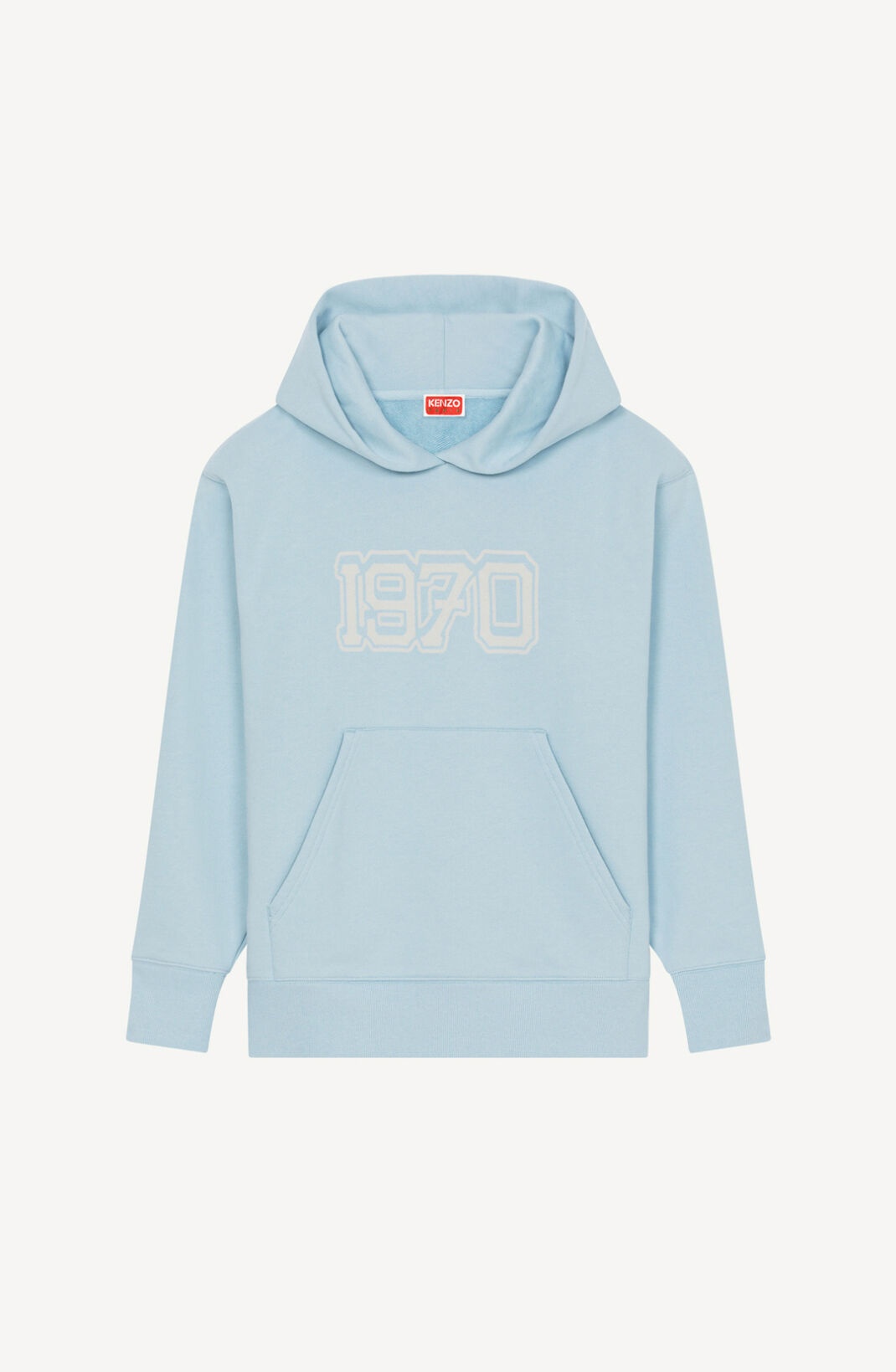 This oversize sweatshirt takes the streetwear codes Nigo holds so dear and combines them with American college campus style. The House's iconic Tiger appears in the form of a sports mascot on the back. The number 1970 appears on the front in a graphic vintage style, symbolising the year the House was founded. Long-sleeved oversize sweatshirt. Hood at neckline. Kangaroo pocket. 1970 print on front. 'Varsity Tiger' and KENZO Paris prints on back. SIZE & FIT Oversize cut. COMPOSITION & CARE Made in Portugal 100% cotton