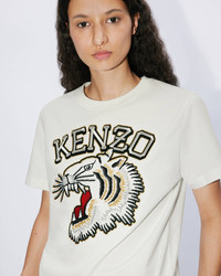 This graphic 'Varsity Tiger' T-shirt embraces a festive streetwear style. The embroidered iconic KENZO Tiger is embellished with gold and silver threads. This design comes in a loose fit for a comfortable, modern look. Loose short-sleeved T-shirt. Round neck. Oversized silver and gold 'Varsity Tiger' on the front. KENZO Paris label below the neckline at the back. SIZE & FIT The model is 175 cm tall and wears a size S. Loose fit. COMPOSITION & CARE Made in Portugal 100% cotton