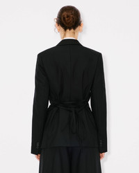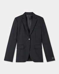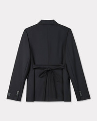 Waisted blazer in virgin wool. Satin lining. 2 front pockets with flap. Inside pocket with one with button closure. Cuff with 3 buttons and removable tiny belt. 1 buttons single-breasted closure. Tonal 'KENZO Paris' label at sleeve and 'KENZO Paris' engraved buttons. Product Reference: FF52VE2619RA.99 SIZE & FIT The model is 175 cm tall and is wearing size S. Back length at 70 cm. COMPOSITION & CARE Made in Bulgaria 100% virgin wool Do not bleach Mild professional dry-cleaning in: hydrocarbons Iron at low temperature Line drying in the shade Do not tumble dry Do not wash Do not wet-clean