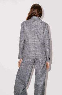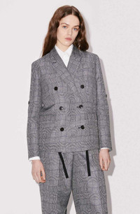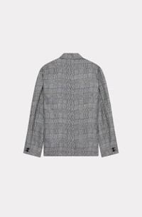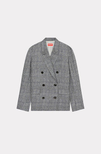 With this oversized blazer jacket, Nigo updates Kenzo Takada's audacious graphic style. Classic Prince-of-Wales checks are transformed into a vibrant 'Wavy Check' pattern. The masculine double-breasted front creates a particularly modern androgynous style. Oversized blazer jacket. Long sleeves. Tailored collar. All-over 'Wavy check' design. 1 chest pocket, 1 inside pocket and 2 side flap pockets. KENZO logo on sleeve. Adjustable straps allow various sleeve lengths. Half lined. Fasten with double-breasted buttons. SIZE & FIT Straight oversized cut. Length of back: 73 cm. COMPOSITION & CARE Made in Romania 52% polyester, 48% cotton