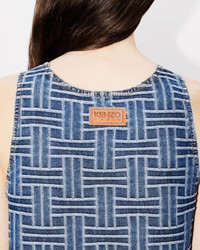 'KENZO Weave' three-hole dress. Stone wash. Japanese denim. Contrasted topstitches. Zip closure at side. KENZO Paris leather jacron at back. Product Reference: FE62DR2516J3.DS SIZE & FIT Back length at 76 cm. The female model is 175 cm tall and is wearing size S. COMPOSITION & CARE Made in Tunisia 100% cotton Do not bleach Mild professional dry-cleaning in: hydrocarbons Iron at low temperature Line drying in the shade Do not tumble dry Do not wash Do not wet-clean