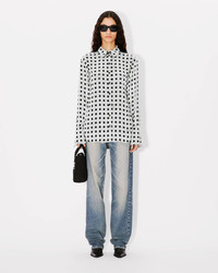 'KENZO Weave' oversized shirt. Devore viscose. Shirt collar. Single breasted closure. 1 button at cuffs. KENZO Archive signature inside the pattern. Product Reference: FE62CH2549I1.93 SIZE & FIT The model is 175 cm tall and wears a size S. Back length at 67 cm. COMPOSITION & CARE Made in Tunisia 61% viscose, 39% polyester Do not bleach Mild professional dry-cleaning in: hydrocarbons Iron at low temperature Line drying in the shade Do not tumble dry Do not wash Do not wet-clean
