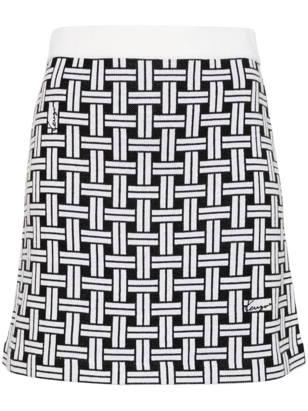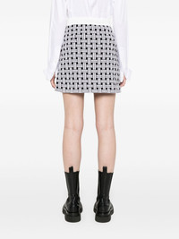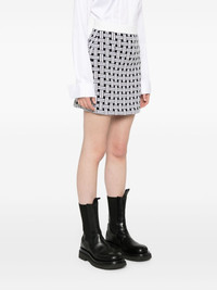 patterned-jacquard mini skirt Highlights - White/black - Cotton-wool blend - Knitted construction - Geometric patterned jacquard - Jacquard logo motif - Thigh-length - Straight hem - Ribbed elasticated waistband Imported Composition Cotton 67%, Wool 33% SIZE & FIT Model measurements Height 5 ft 9 in(1.75 m) Bust/Chest 31.88 in(81 cm) Hips 34.64 in(88 cm) Waist 24.01 in(61 cm) FittingInformation This mini-length skirt is intended to be worn high on the waist The elasticated waist allows for a comfortable fit Made with a midweight knit, this piece offers some stretch This piece fits true to size – take your usual size