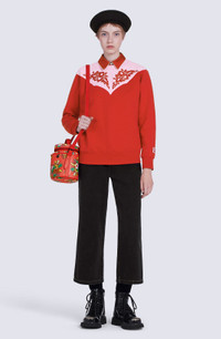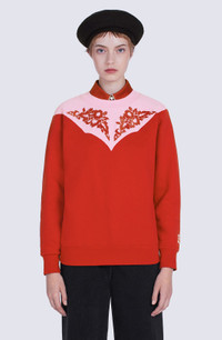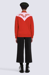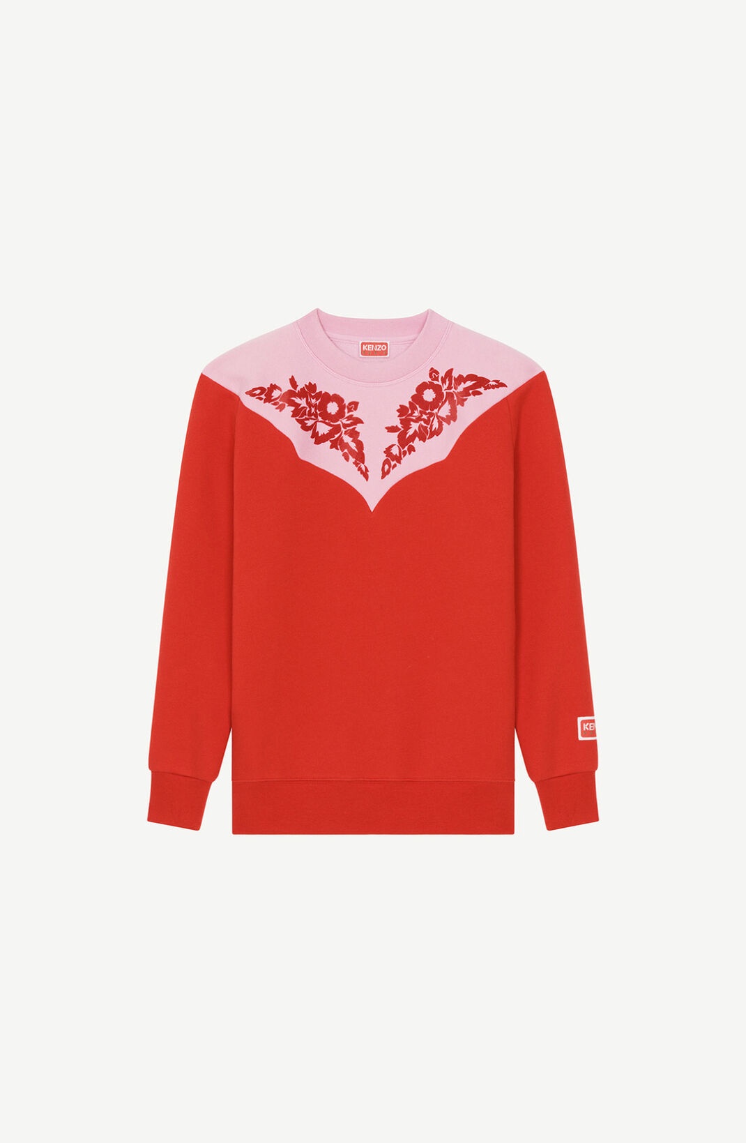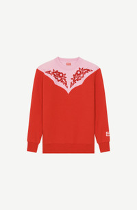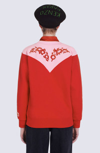 Let the Wild West spice up your collection with this original sweatshirt. It features a cowboy-style design in the shape of a graphic panel detail stretching from the chest round to the back. This contrasting cut-out detail is embellished by symmetric floral motifs straight from the brand's archives. Long-sleeved sweatshirt. Round neck. 'Western Flower' motif flocked on front and back. KENZO Paris label at the end of one sleeve. Contrasting Western-style cut-out detail on front and back. Ribbed collar, cuffs and hem. COMPOSITION & CARE Made in Portugal 100% cotton