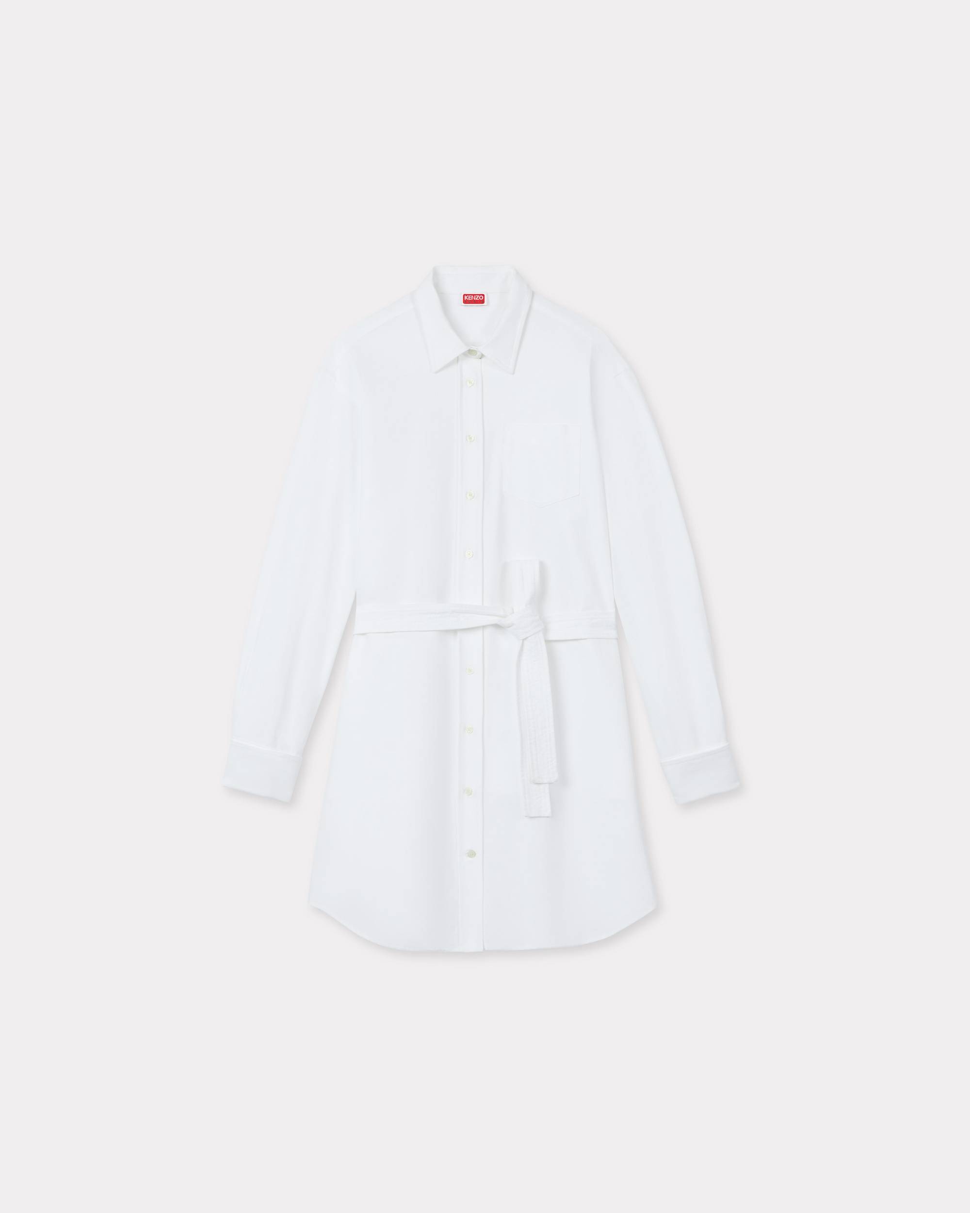Shirt dress with kimono sleeves. Oxford cotton. Large double shirt cuffs. Removable belt with Japanese top stitching. Patch pocket at front and two seamed pocket at sides. Boke Flower button at sleeve and KENZO Paris engraved buttons. Product Reference: FF52RO4059LO.01 SIZE & FIT The model is 175 cm tall and is wearing size S. Back length at 96 cm. COMPOSITION & CARE Made in Tunisia 100% cotton Do not bleach Mild professional dry-cleaning in: hydrocarbons Iron at low temperature Line drying in the shade Do not tumble dry 30°C very mild fine wash Very mild professional wet-cleaning