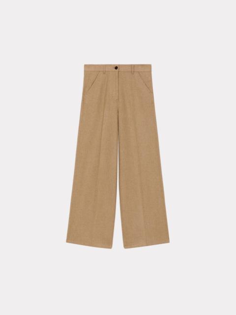 These suit trousers embody the sophistication of the House's more tailored pieces. The virgin wool design is both warm and elegant. The back pocket is decorated with a 'BOKE FLOWER' button in a nod to Nigo's inaugural collection. Virgin wool suit trousers. Flap pocket on the back with button shaped like a 'BOKE FLOWER.' 2 diagonal pockets set into the side seams. Full-length pleats. Belt loops. Hidden zip and button fastening at the front. Product Reference: FD62PA0719GE.77 SIZE & FIT Regular waist. Leg length: 102 cm. The model is 176 cm tall and wears a size S. COMPOSITION & CARE Made in Romania 100% virgin wool Do not bleach Mild professional dry-cleaning in: hydrocarbons Iron at low temperature Line drying in the shade Do not tumble dry Do not wash Do not wet-clean