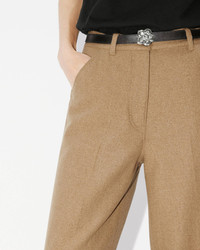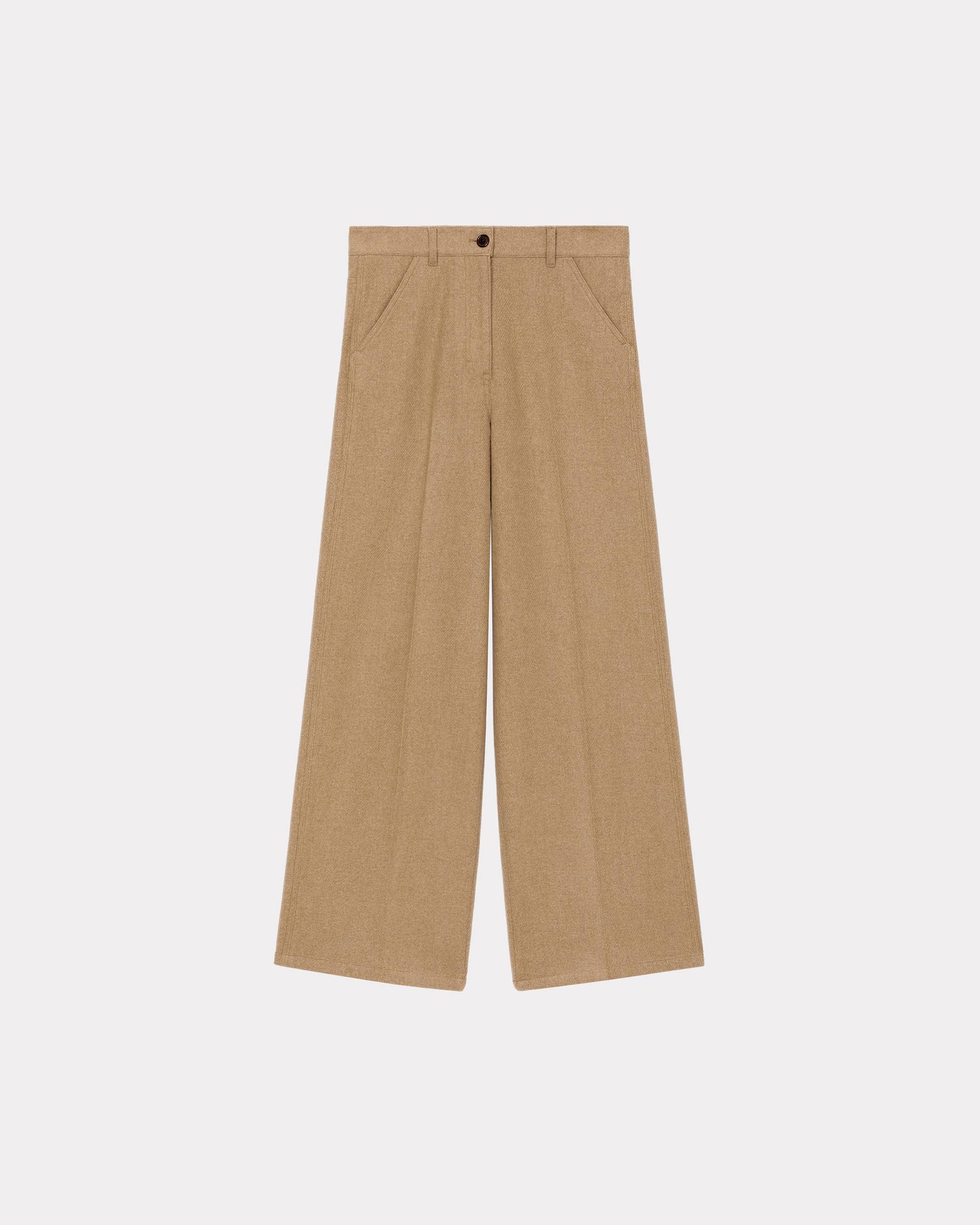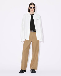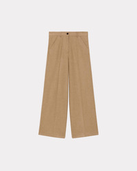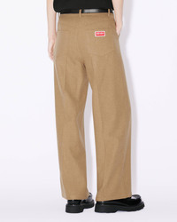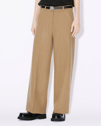 DESCRIPTION These wool trousers draw inspiration from designs originally crafted in denim. They feature long pleats down the front and back, lending them a trendy look. These trousers go well with the matching oversized shirt or any of the tops from this collection for a complete ensemble look. Wool trousers. Normal waist and straight leg. Long pleats on front and back. Belt loops. Two side pockets. KENZO Paris label on back pocket. Zip fastening under button flap. SIZE & FIT Length at leg: 96 cm.