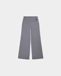 Virgin wool tailored pants. Side pockets at front. Jetted pockets with flap at back. Basic belt loop. Cuffs and hidden zip & button closure. Boke flower button. KENZO Paris label at back. Product Reference: FE62PA0949RB.97 SIZE & FIT The model is 175 cm tall and wears a size S. Leg length at 102 cm. Regular waist. COMPOSITION & CARE Made in Romania 76% virgin wool, 23% cotton, 1% elastane Do not bleach Mild professional dry-cleaning in: hydrocarbons Iron at low temperature Line drying in the shade Do not tumble dry Do not wash Do not wet-clean