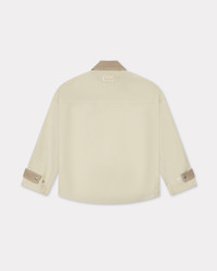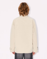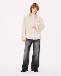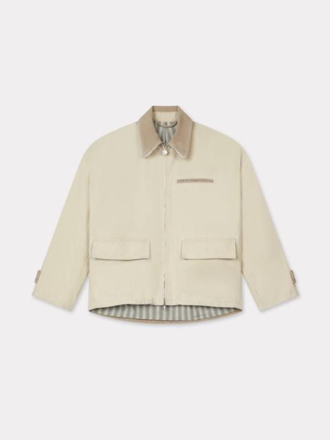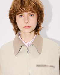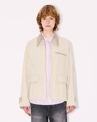 Workwear jacket. Garment dye and velvet (on flaps & collar). Cotton printed lining. Cocoon shape at back : oversized part at the upper back. 1 inside pocket, 2 flap pockets at front and 1 chest pocket with a zip. 2-ways zip, adjustable flap at cuffs and classic collar. Tonal 'KENZO Paris' label at back and metallic Boke Flower on the zip. Product Reference: FF62VE2729HA.11 SIZE & FIT The model is 175 cm tall and is wearing size S. Back length at 76 cm. COMPOSITION & CARE Made in Tunisia 100% cotton Do not bleach Mild professional dry-cleaning in: hydrocarbons Iron at low temperature Line drying in the shade Do not tumble dry