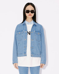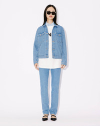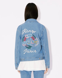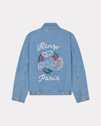 This iconic denim piece, an authentic take on the traditional trucker jacket, celebrates the Year of the Dragon with its colourful embroidery. The mythical creature represents luck, strength and health in China. We like the traditional denimwear elements that appear on this piece, such as contrasting top stitches and riveted pockets at the front. Embroidered Japanese denim trucker jacket. Long sleeves that button at the cuffs. Shirt collar. 'Year of the Dragon' and 'KENZO Paris' embroidery on the back. Two buttoned flap pockets on the chest. Two diagonally placed side pockets. Adjustable button tabs at the back. Fastens with engraved 'KENZO Paris' buttons. SIZE & FIT The model is 175 cm tall and wears a size S. COMPOSITION & CARE Made in Tunisia 100% cotton