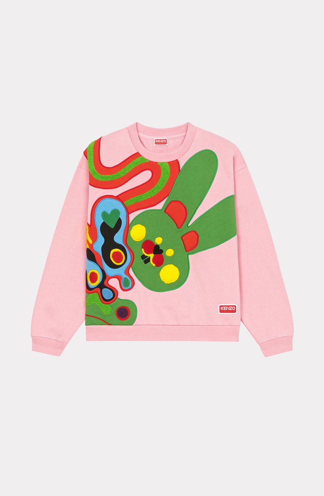 This coloured sweatshirt is an example of Nigo's casual, cheerful and creative collection. A large naive 'KENZOO' pattern enhances the front, continues on to the shoulder and finishes at the nape of the neck, while the KENZO Paris logo adds a finishing touch. As an example of KENZO workmanship, each animal is enhanced with embroidered and knitted detailing. Long-sleeved sweatshirt. Round neckline. 'KENZOO' patterns made from textured fleece, knitted sections and embroidery. KENZO Paris label at the front. SIZE & FIT Classic cut. COMPOSITION & CARE Made in Portugal 100% cotton