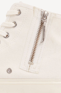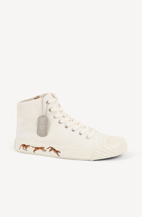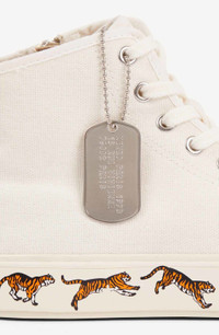 In this new collection that blends the past with the present, artistic director Nigo has created a new angle on the classic canvas high-top trainers. These shoes boast a variety of original details, from the military tag to the 'Running Tiger' printed on the sole. Canvas high-top trainers. 'Running Tiger' printed on sole. Contrasting KENZO Paris logo on back of heel. Military tag-style metal plaque engraved with KENZO brand address. Metal eyelets on side. Ribbed details on front of sole. Zip side fastening. Lace fastening. SIZE & FIT Sole thickness: 2.5 cm. These trainers offer a normal fit, choose your usual size. If in between two sizes, choose the one above. COMPOSITION & CARE Made in Vietnam 100% cotton