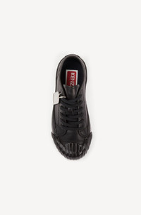 The KENZOSCHOOL low-top trainers offer vintage codes used in the past for American army footwear. They have a metallic panel and a thick sole textured at the front. The KENZO Paris logo adds a touch of colour to the back. Leather low-top trainers. KENZO Paris logo at the back of the sole. Military-inspired panel with engraved KENZO address. Metallic eyelets at the side. Ribbed detailing at the front of the sole. Lace fastening. SIZE & FIT Height of heel: 2.5 cm. This model has a normal fit so choose your usual size. For half sizes, choose the size above. COMPOSITION & CARE Made in Vietnam 100% cow leather