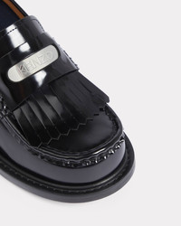 Artistic director Nigo offers a new twist on preppy style with these fringed leather loafers. They combine classic lines with a modern square heel and a wide apron adorned by a metallic plaque engraved with the KENZO name. Heeled Spazzolato leather loafers. Fringe on the front. Metallic plaque engraved with the KENZO name on the front. Leather lining and insole. SIZE & FIT Heel height: 6 cm. This design fits normally, choose your usual size. If you are between sizes, opt for the larger of the two. COMPOSITION & CARE Made in Portugal 100% calf leather