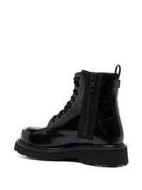 Kenzosmile leather ankle boots jet black calf leather high-shine finish debossed logo to the side metal toecap engraved logo front lace-up fastening side zip fastening pull-tab at the heel round toe branded insole rubber lug sole Imported Composition Sole: Calf Leather 100% Outer: Leather 100% Lining: Leather 100% SIZE & FIT Measurement HEIGHT 5.51 in(14 cm) HEEL 1.77 in(4.5 cm) Sole height 1.18 in(3 cm)