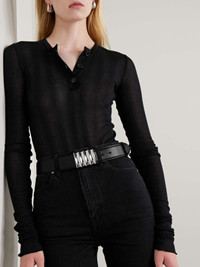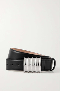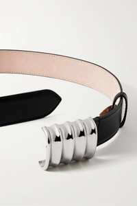 EDITORS'NOTES The sculptural buckle on Khaite's 'Julius' belt was also spotted on necklaces at the label's Resort '23 show. Made from smooth leather, it looks just as chic around the waist of a blazer as it does through the loops of jeans. SIZE & FIT - Designed to be worn on the hips or waist - Measurements can be found in the link below DETAILS & CARE - Black leather (Calf) - Push stud fastening - Comes with a dust bag