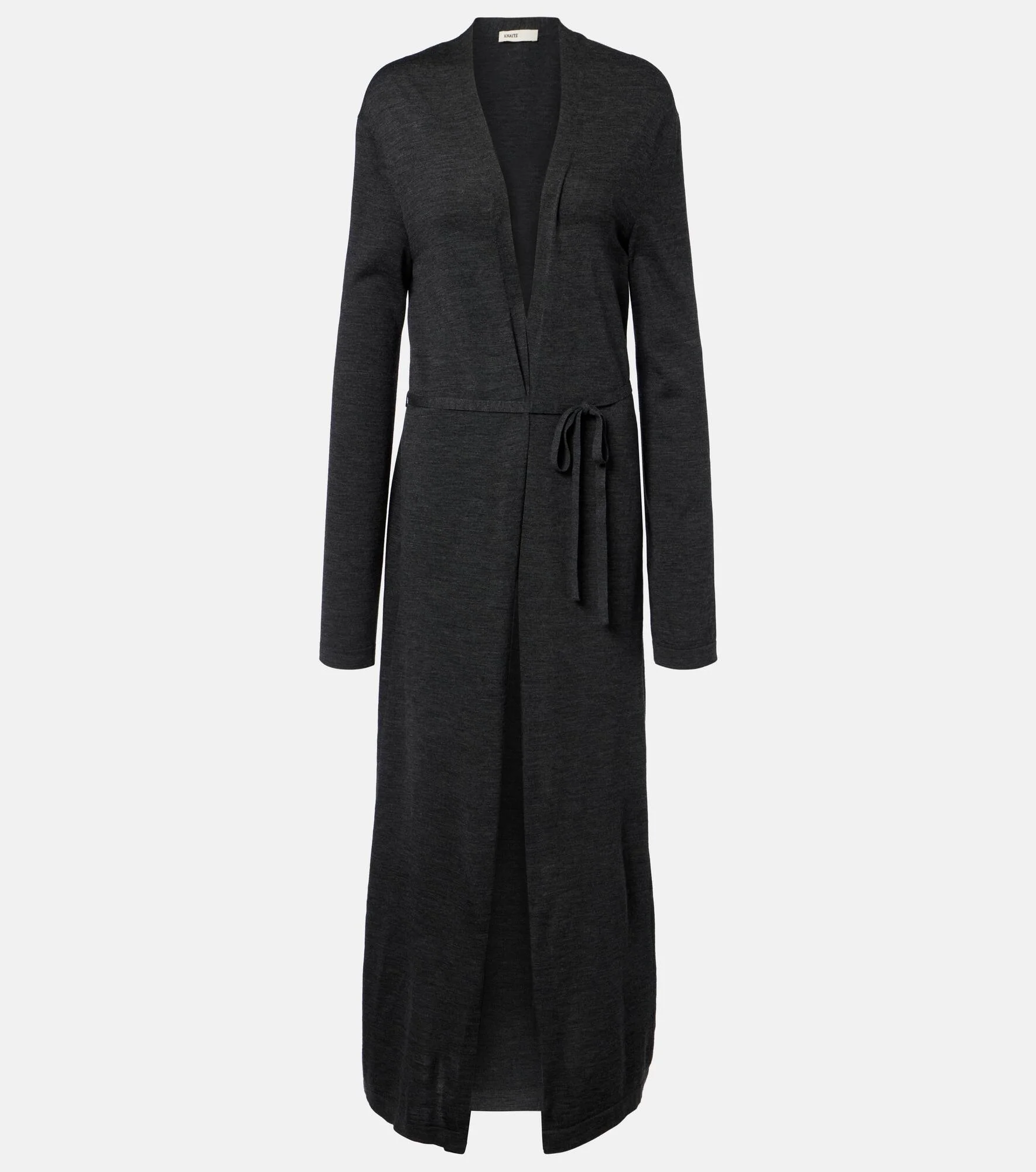 Khaite's minimalist designs exude modern sophistication and effortless elegance. The Alek wrap cardigan is made in Italy from pure wool and has a belt detail at the hip. Product Details - Material: 100% wool (merino wool) - Care instructions: dry clean - Made in Italy - Color: grey - Designer color name: Storm - Item color: gray - Attached belt - Item number: P01107086 Size & Fit - True to size - Loose fit, comes with belt - Stretchy fabric - Falls below the hip - Height of model is 174cm-68.5" and wears a size XS