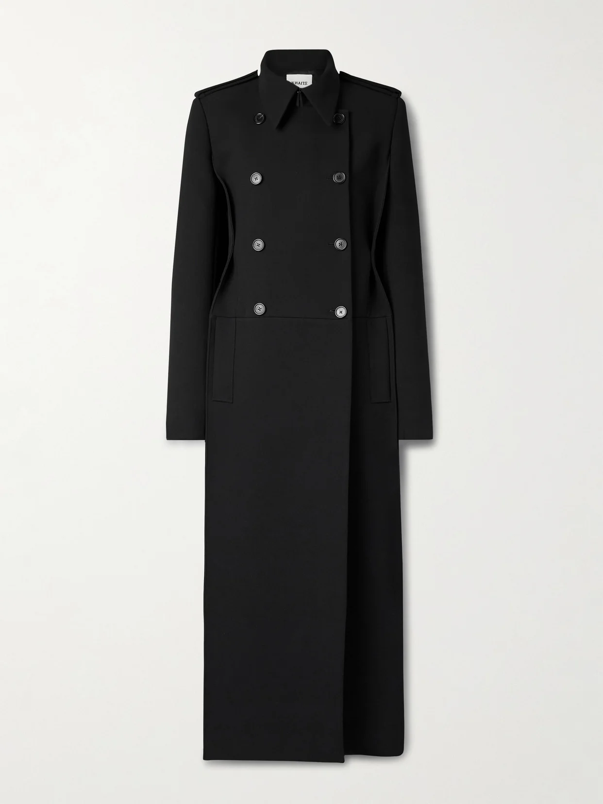 KHAITE's 'Alton' coat is an elegant choice for the colder seasons. Inspired by military styles, it's tailored from black crepe in a double-breasted profile and has epaulettes, curved panels along the sides and a satin-twill lining.