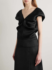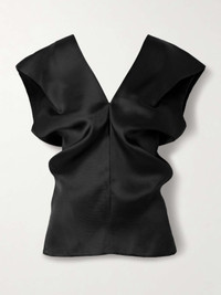 EDITORS'NOTES Titled 'Unfolding', KHAITE's Fall '24 collection experiments with fabric, volume and silhouettes in a unique way. This 'Ami' top is made from luxurious silk-gazar - a fabric heavily featured throughout the range - that's artfully bunched and draped through the bodice. Wear yours with the coordinating 'Mila' skirt and heels. SIZE & FIT - Fits true to size, take your normal size - Designed for a loose fit - Lightweight, non-stretchy fabric - Model is 180cm/ 5’11” and is wearing a US 2 DETAILS & CARE - Black silk-gazar - Concealed hook and zip fastening at back - 100% silk