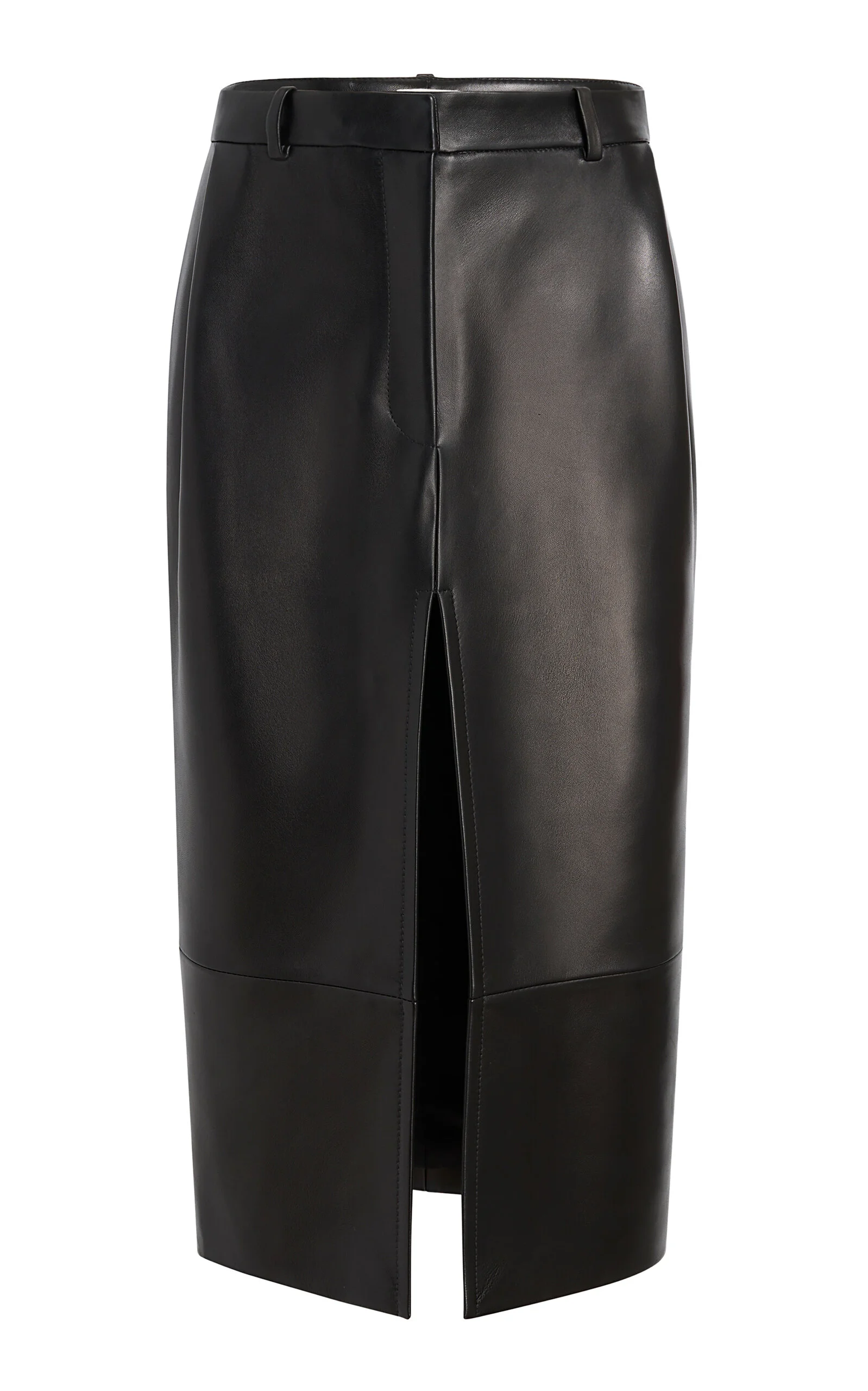 PRODUCT DETAILS - Belt detail, front slit, pencil shape, midi hem - Concealed zip and hook fastening - Composition: 100% Lambskin Nappa Leather - Leather specialist - Made In: Italy - Spring/Summer '26