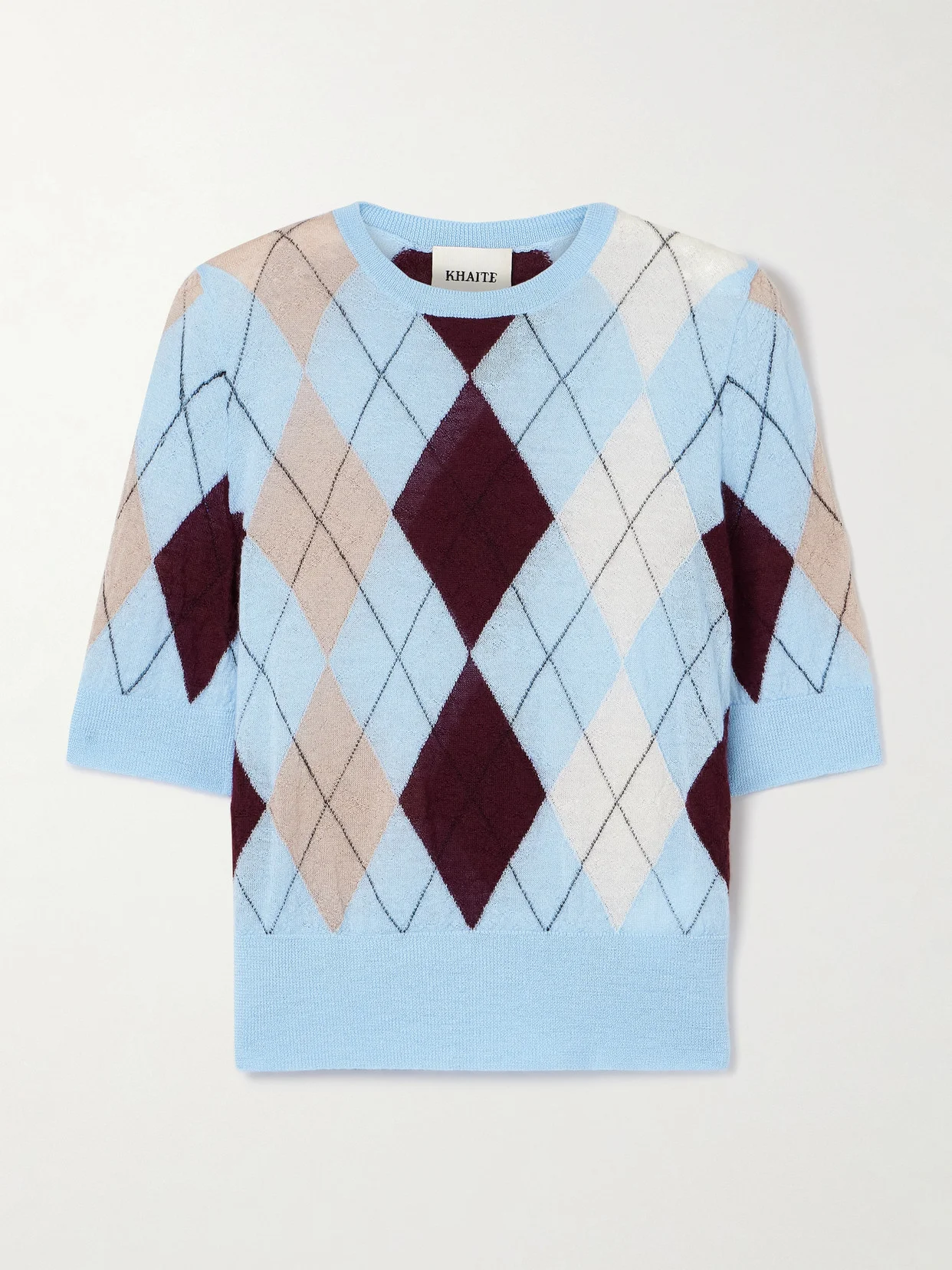 KHAITE's Fall '25 collection pays homage to David Lynch, with argyle sweaters that nod to the retro knitwear seen in Twin Peaks. This 'Anders' style is made from a cashmere and mohair-blend for a slightly loose fit with elbow-grazing sleeves.