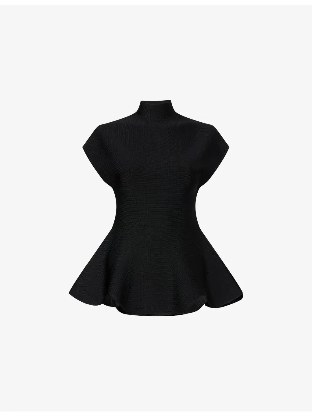 PRODUCT DETAILS - KHAITE knit top - 66% viscose, 31% polyamide, 3% elastane - Concealed zip fastening at collar - Regular fit, stand collar, cap sleeves, flared hem - Dry clean - True to size - Size small: length 24.5in / 62cm - Model is 5ft 10in/1.78m and wears a size small - Midweight, slight stretch Ref: R04605505