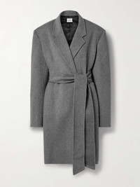 EDITORS'NOTES Plays on proportion are a key aspect of KHAITE's Fall '24 collection. This 'Annly' coat is cut in an enveloping silhouette with dropped, jutting shoulders and slightly longer-length sleeves. It's made from soft wool-felt and double-faced for warmth. SIZE & FIT - Fits true to size, take your normal size - Intended for a loose fit, use the tie belt to cinch in at the waist - Internal shoulder pads - Dropped shoulder seams - Weighted, non-stretchy fabric - Model is 175cm/ 5'9" and is wearing a size Small DETAILS & CARE - Gray wool-felt - Slips on - 100% wool