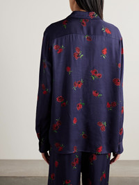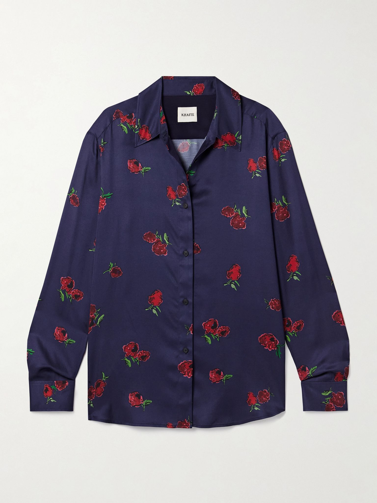 KHAITE incorporates playful individuality into its understated pieces with an artistic raspberry print for Spring '25. This 'Argo' shirt is made from silk-twill for a loose fit and has a neat collar and buttoned cuffs. Wear yours with the coordinating skirt in our edit. Size & Fit - Fits true to size, take your normal size - Designed for a loose fit - Lightweight, non-stretchy fabric - Model is 180cm/ 5’11” and is wearing a size Small Model measurements: - Bust: 79cm/ 31” - Waist: 61cm/ 24” - Hip: 89cm/ 35” Details & Care - Indigo, green and red silk-twill - Button fastenings through front - 100% silk; buttons: 100% horn (Buffalo)
