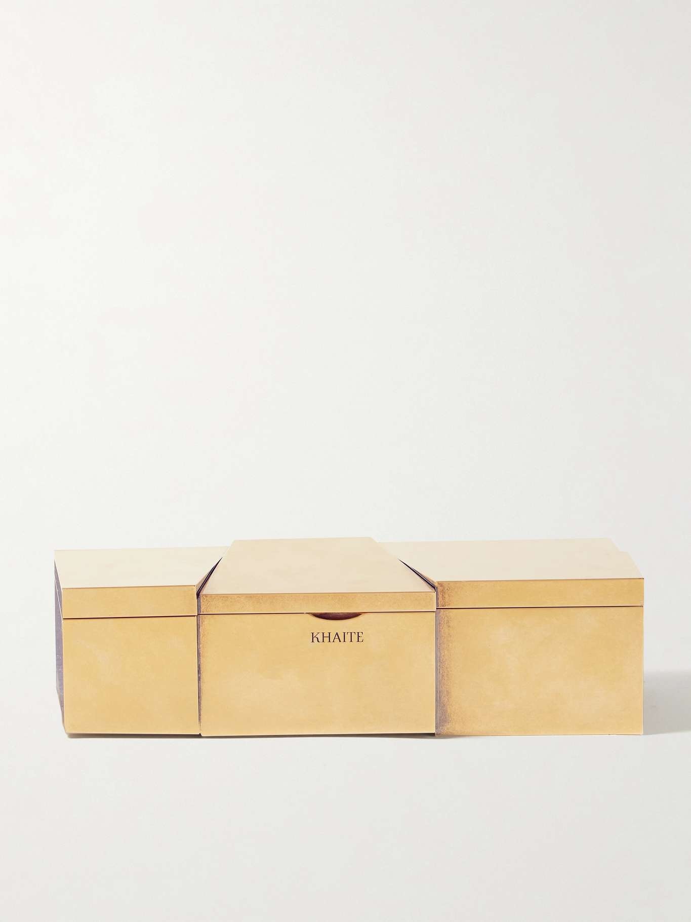 EDITORS'NOTES You wouldn't have been alone in thinking the models walking Khaite's Spring '24 runway were casually carrying bars of gold in hand - a closer look reveals it was simply this 'Axel Minaudiere' clutch. Made from gold-tone metal, it's engraved with the brand's logo and opens to a suede-lined interior complete with a mirror for on-the-go touchups. Store your lipstick, hair tie and a few mints inside. SIZE & FIT This item’s measurements are: - Height: 6.5cm / 2.6in - Width: 17cm / 6.7in - Depth: 6cm / 2.4in DETAILS & CARE - Gold-tone metal - Suede lining - Magnetic-fastening lid