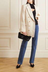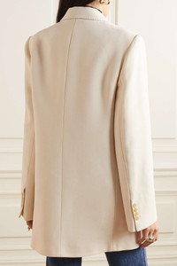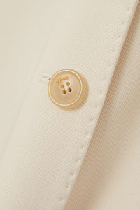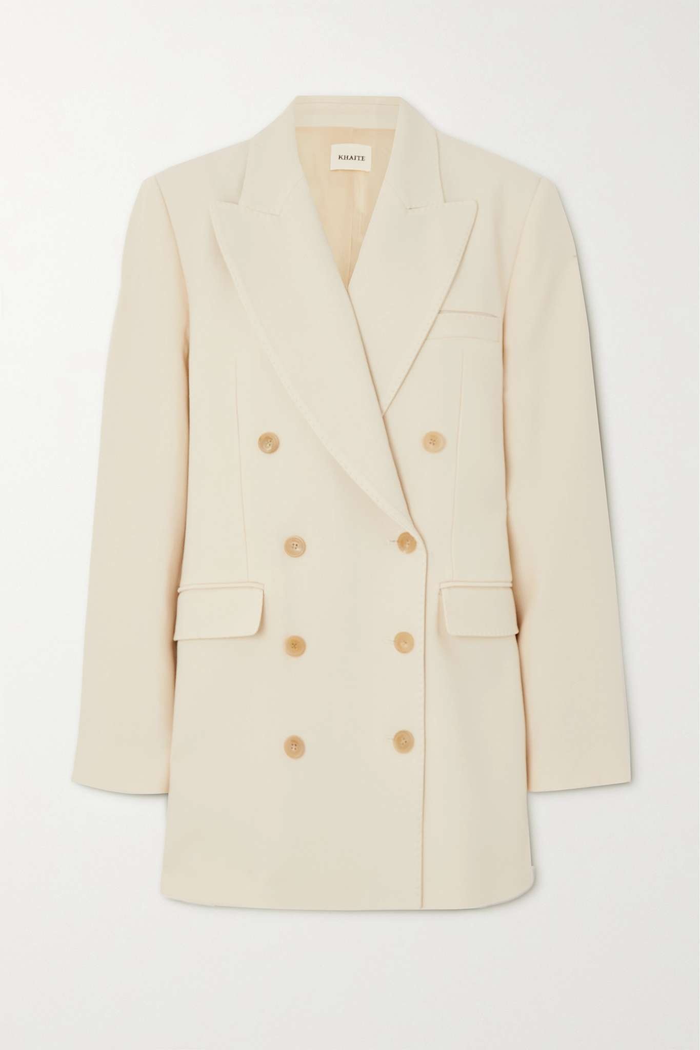 EDITORS'NOTES The effortlessly sophisticated mood of Khaite's tailoring is testament to Catherine Holstein's love of elevated classics. Cut for a loose fit, this double-breasted 'Balton' blazer is made from wool-blend with padded shoulders and buttoned cuffs. The smooth lining means it'll layer comfortably over shirting and knitwear. SIZE & FIT - Fits true to size, however those who are between sizes should take the smaller size - Tailored for a loose fit - Internal shoulder pads - Mid-weight, non-stretchy fabric - Model is 177cm/ 5'10" and is wearing a US 2 DETAILS & CARE - Cream wool-blend - Button fastenings through double-breasted front - 75% wool, 25% viscose; buttons: 100% horn (Buffalo) - Dry clean - Designer color: Custard