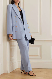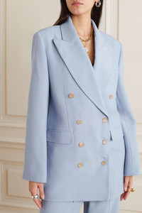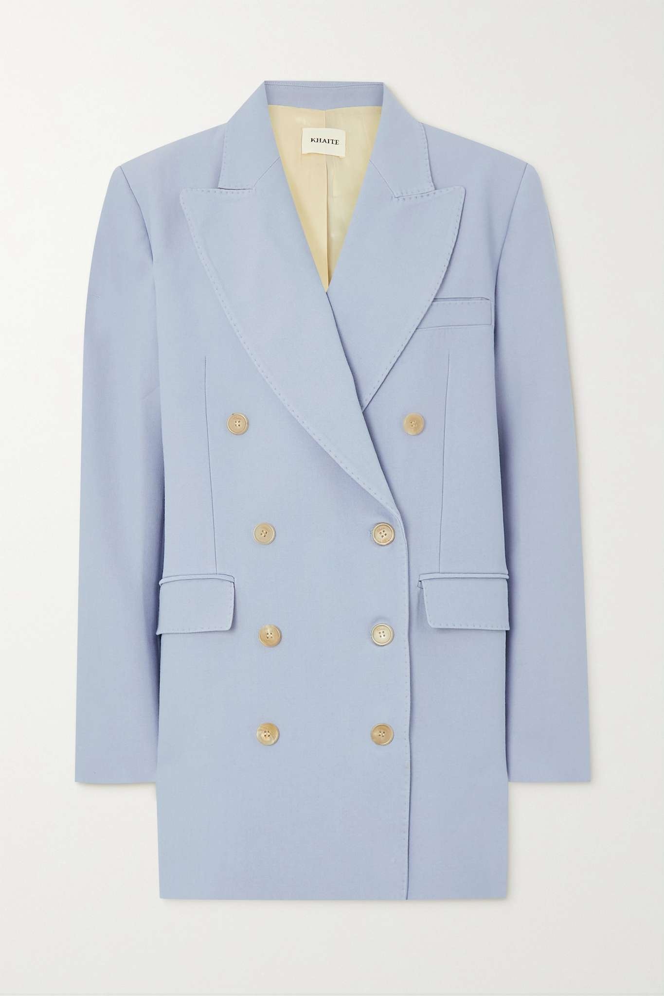 EDITORS'NOTES The effortlessly sophisticated mood of Khaite's tailoring is testament to Catherine Holstein's love of elevated classics. Cut for a loose fit, this double-breasted 'Balton' blazer is made from wool-blend with padded shoulders and buttoned cuffs. The smooth lining means it'll layer comfortably over shirting and knitwear. SIZE & FIT - Fits true to size, however those who are between sizes should take the smaller size - Tailored for a loose fit - Internal shoulder pads - Mid-weight, non-stretchy fabric - Model is 177cm/ 5'10" and is wearing a US 2 DETAILS & CARE - Lilac wool-blend - Button fastenings through double-breasted front - 75% wool, 25% viscose; buttons: 100% horn (Buffalo) - Dry clean - Designer color: Peri