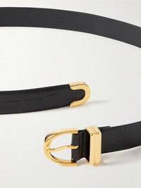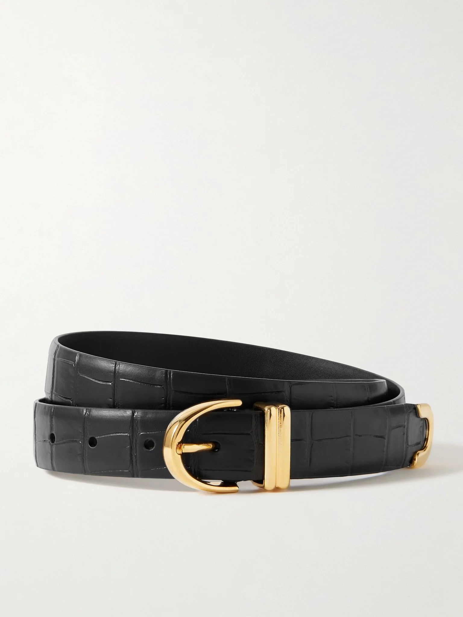 KHAITE's elevated staples are meant to be worn and loved for years to come, and this versatile belt is no exception. Made in Italy from croc-effect leather, it has a slim shape and fastens with a polished gold-tone buckle. Wear yours through the loops of your jeans or to cinch the waist of a blazer. Details & Care - Black leather (Calf) - Buckle fastening
