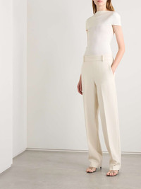 KHAITE's 'Basile' bodysuit has a seamed boat neckline that looks like it's folded and sits just off the shoulder at first glance. It's knitted for a close fit with cap sleeves and reveals a touch of skin at the back. Size & Fit - Fits true to size, take your normal size - Designed for a close fit - Minimal brief coverage - Mid-weight knit - S/M/L Details & Care - White viscose, polyester and polyamide-blend - Snap fastenings at base - 77% viscose, 16% polyester, 7% polyamide - Designer color: Glaze