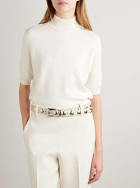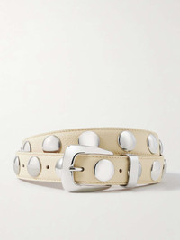 EDITORS'NOTES KHAITE's 'Benny' belt will tie together so many outfits. It's made from ivory leather and punctuated with silver-tone studs to match the buckle. Don't save it just for jeans and pants – experiment by styling yours over midi dresses and coats. SIZE & FIT - Designed to be worn on the hips or waist - Measurements can be found in the link below DETAILS & CARE - Ivory leather (Calf) - Buckle fastening
