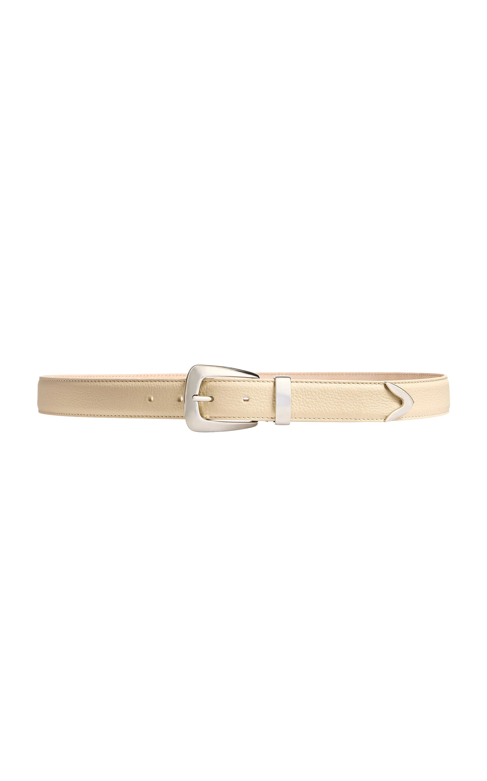 Khaite’s Catherine Holstein defines New York’s cool girl with her ability to perfect covetable accessories that marry grit with glamour and blur the boundaries between day and evening. 'Benny' is a refined and versatile belt made memorable by jewelry-like hardware — a boldly formed buckle, loop, and tip — in palladium-plated brass. PRODUCT DETAILS - Buckle fastening - Composition: calfskin leather - Made in Italy SIZE & FIT - Height measures approximately 30mm
