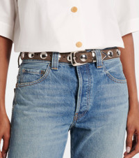 Crafted in Italy from leather, the Benny belt features a studded style with silver-tone hardware. Khaite's minimalist designs exude modern sophistication and effortless elegance. Product Details - Material: calf leather - Lining: calf leather - Made in Italy - Designer color name: Ebano - Item color: brown - Item number: P01052976 Size & Fit - Width 3cm-1" - Buckle width 4.5cm-2"