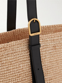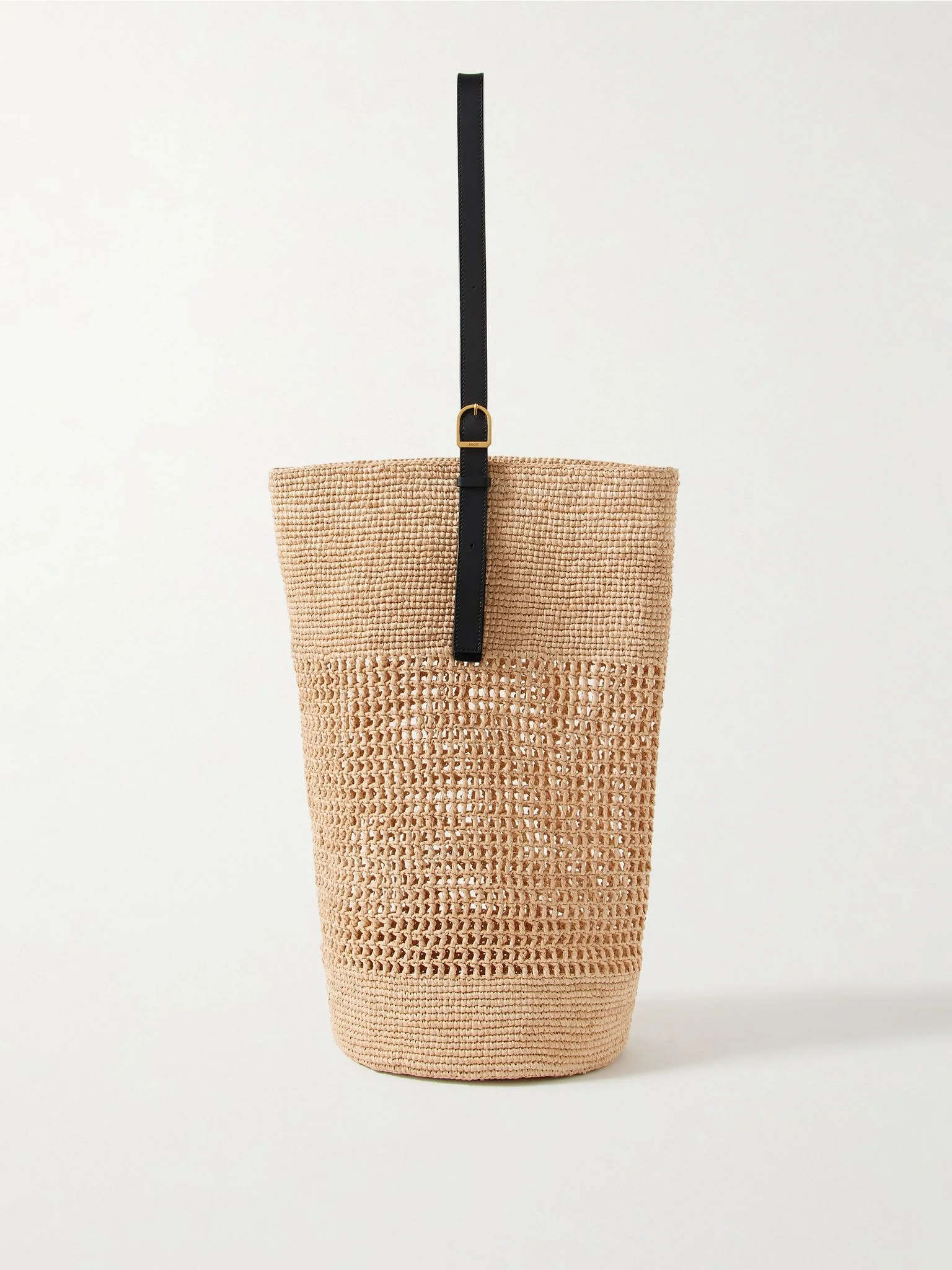 KHAITE's 'Billie' bag is made from raffia and has more of an open weave along the bottom for a cool contrast. Designed in a spacious bucket shape, it has a leather strap that can be adjusted to your preferred drop. There's plenty of room inside for larger essentials like a sunglasses case and water bottle. Details & Care - Raffia, black leather - Adjustable top handle - Unlined - Open top