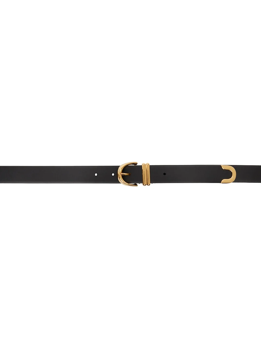 Buffed calfskin belt in black. · Pin-buckle fastening · Gold-tone hardware · W1" Supplier color: Black Calfskin. Made in Italy 251914F001018