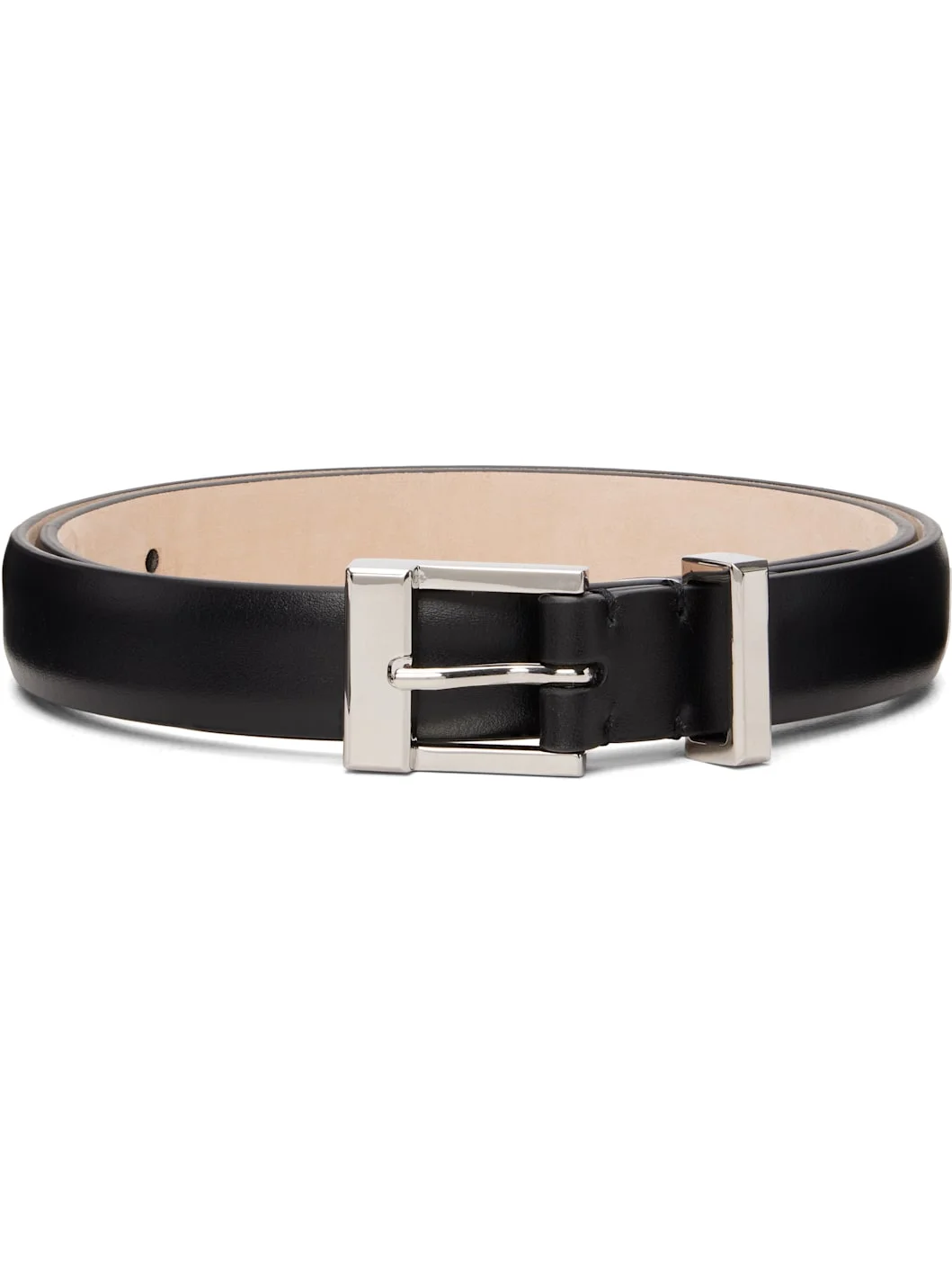 Buffed leather belt. · Keeper loop · Pin-buckle fastening · Silver-tone hardware · W0.75" Supplier color: Black Leather. Made in Italy 261914F001003