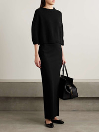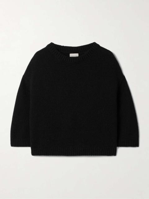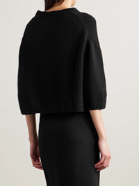 EDITORS'NOTES Slight tweaks to the classic shape make KHAITE's 'Sabina' sweater feel distinct. Designed with dropped, slightly snug shoulders, it's made from soft, insulating cashmere and has ribbed trims outlining the crewneck and abbreviated sleeves. SIZE & FIT - Fits true to size, take your normal size - Designed for a relaxed fit - Dropped shoulder seam - Cropped sleeves - Lightweight knit - Model is 180cm/ 5’11” and is wearing a size Small DETAILS & CARE - Black cashmere - Slips on - 100% cashmere