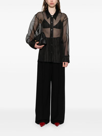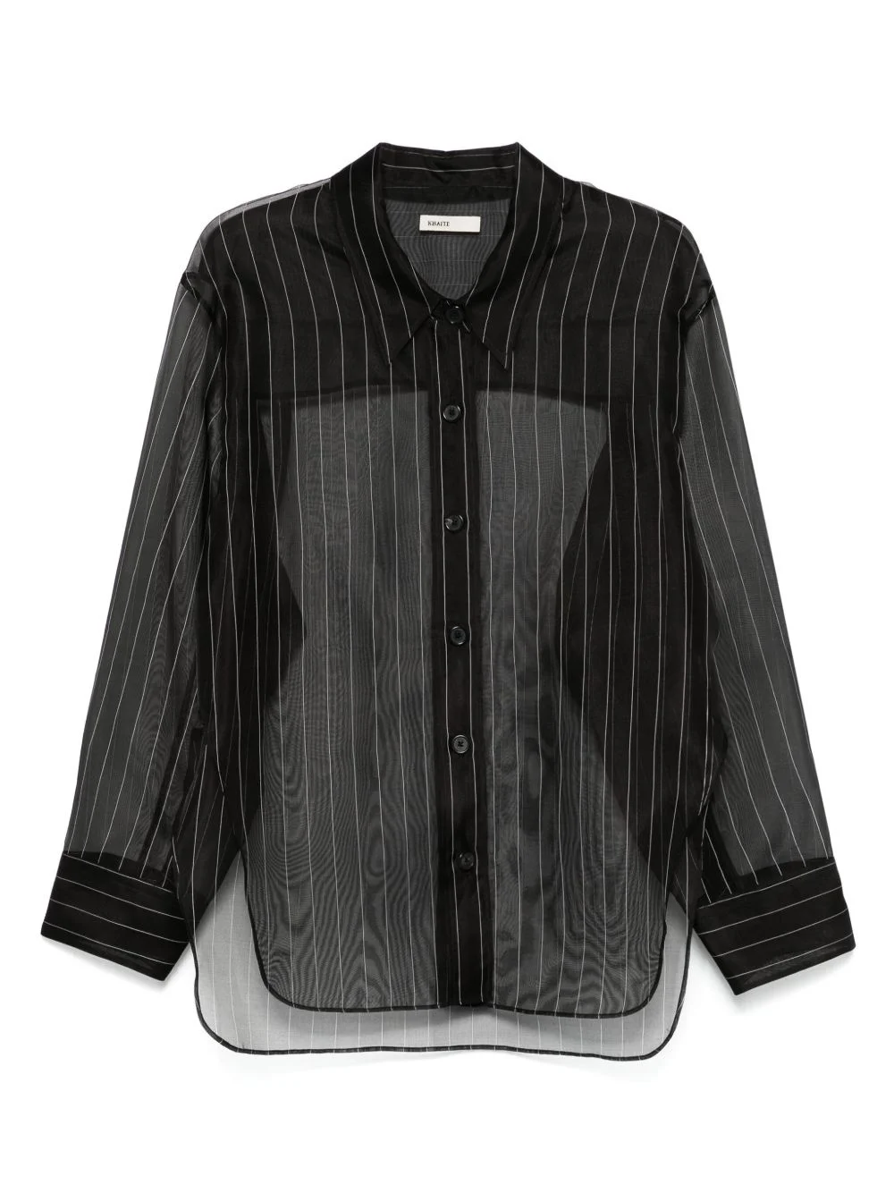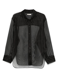 silk shirt Highlights - Black - Front button fastening - Semi-sheer construction - Classic collar - Long sleeves Made in United States Composition Outer: Silk 98%, Polyester 2% Lining: Silk 100% SIZE & FIT Model measurements Height 5 ft 10 in(1.79 m) Bust/Chest 35.43 in(90 cm) Hips 35.03 in(89 cm) Waist 25.19 in(64 cm) FittingInformation Designed for a relaxed fit, this piece allows for comfort and movement when worn Made from a lightweight non-stretch fabric Washing instructions Dry Clean Only